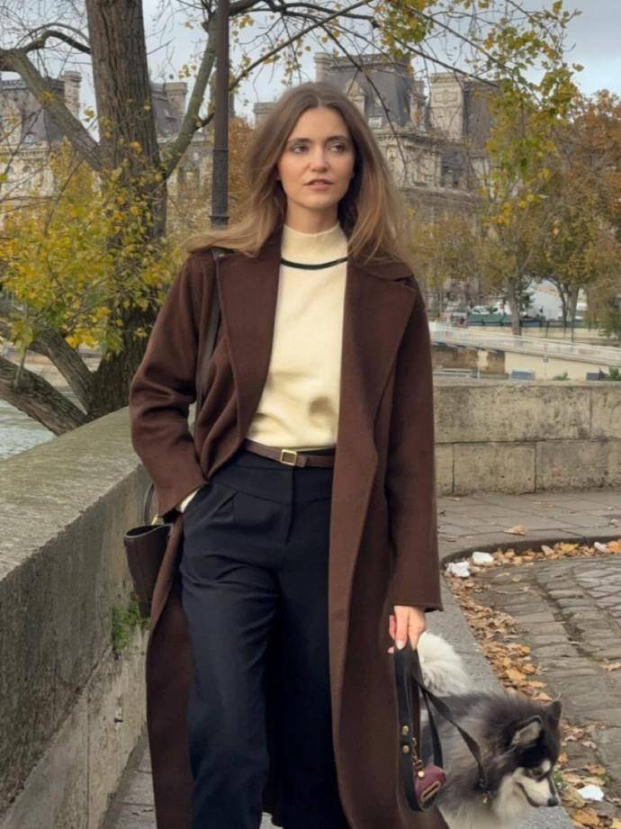 segolene.hyppolite的春节无红穿搭中枢,在于精确拿持“节日感”与“泛泛感”的均衡,她最常袭取的是米白色、燕麦色、浅驼色这类暖和系色调,搭配软糯的古道材质或垂坠感极佳的羊毛大衣,自带一种关切调养的气质,很贴合春节阖家团圆的温馨氛围。就像她近期共享的一套Look,浅燕麦色高领古道衫搭配同色系直筒阔腿裤,外搭一件米白色长款毛呢大衣,眼下踩一对裸色短靴,配饰袭取勤俭的珍珠耳环和皮质手提包,举座造型干净利落,又透着恰到刚正的精湛感,不论是去父闾阎贺年,还是和一又友外出小聚,都显得大方多礼。
